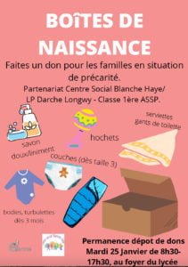 affiche_projet_caritatif_et_pedagogique_collecte_materiels_de_naissance